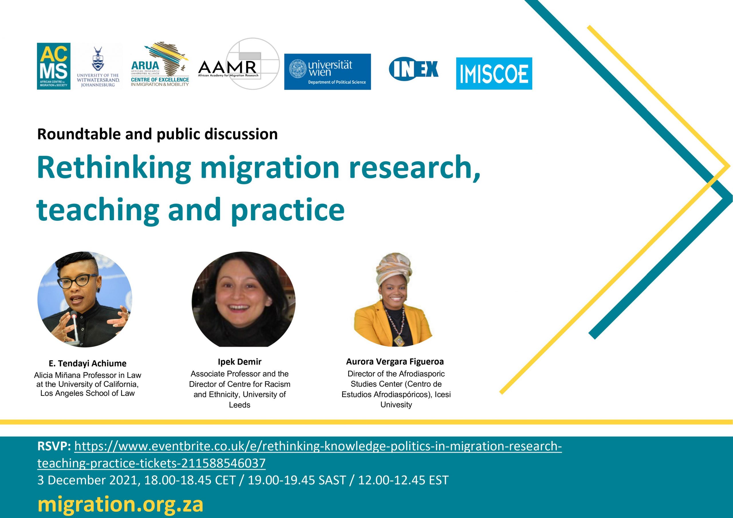 The African Centre for Migration & Society (ACMS) at the University of the Witwatersrand and Department of Political Science at the University of Vienna in partnership with the African Research Universities Alliance (ARUA) and the Anti- Racism Working Group of the IMISCOE International Migration Research Network cordially invite you to a roundtable and public discussion on Rethinking Migration Research, Teaching and Practice.