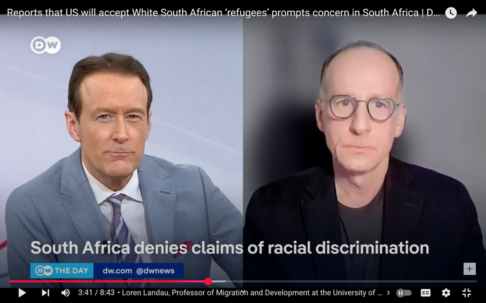 South Africa says it is concerned about reports that the United States of America (USA) will begin taking in White South Africans, who claim they are being racially discriminated against at home. South Africa says the claims are unfounded. The foreign ministry said, “It is most regrettable that it appears that the resettlement of South Africans to the United States under the guise of being ‘refugees’ is entirely politically motivated and designed to question South Africa’s constitutional democracy.” ACMS (Wits University) and University of Oxford’s dual-appointed Professor Loren Landau of Migration and Development, tells Deutsche Welle television news why he thinks White South Africans have no basis to claim asylum in the USA.
